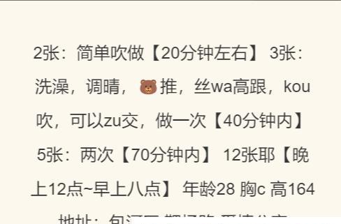 加了很久一直没去光顾的少妇,趁这次有机会问了一下回复很快就果断出击,到楼下遥控上楼,见面很热情跟我打招呼,两个奈子很大忍不住捏了一下手感绝对舒服。交了水费就去简单洗一下,洗完已经脱光在床上等着了,还可以选丝袜,然后就是按摩过水一条龙服务,她比较怕痒哈哈,结束之后边抽烟边聊天很舒服,三百块的价格这个服务绝对值性价比,下次还会反食